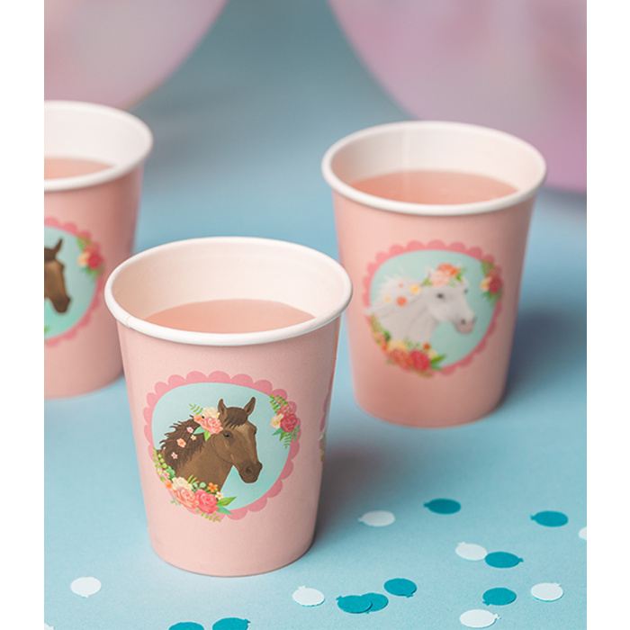 Een tafel leuk decoreren voor een feestje kan perfect met de leuke 'horses' tafel decoratie! De bekers - horses sluiten perfect aan bij de overige tafelversiering met dit thema want naast bekers zijn er namelijk ook servetten en borden verkrijgbaar! De bekertjes zijn per 8 verpakt. Wil je het feest helemaal afmaken, vergeet dan niet om de feestversiering, uitnodigingskaarten en giftbags met paarden thema mee te bestellen.