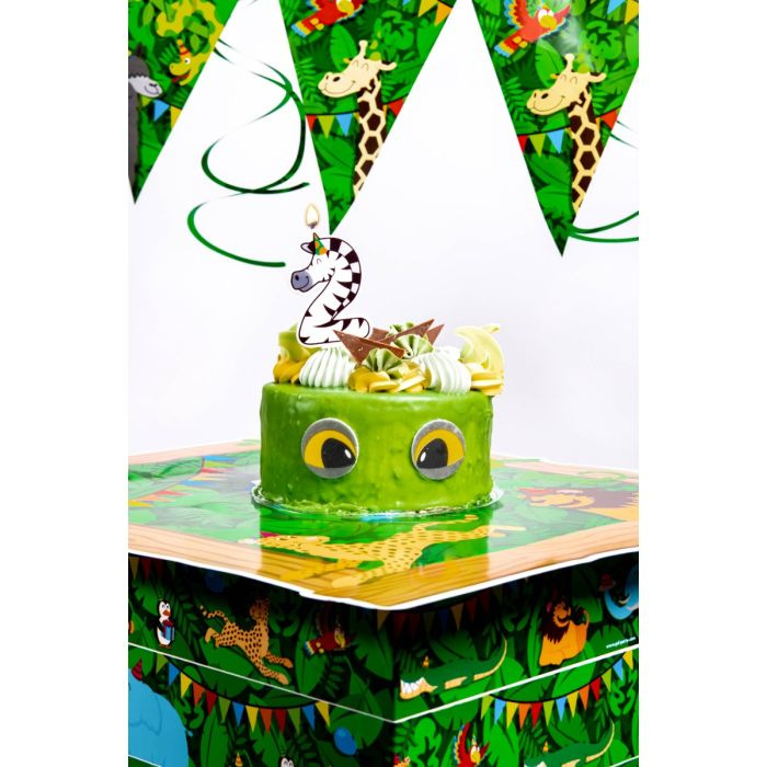 De Jungle kaarsjes zijn de perfecte taartdecoratie op een kinderfeestje, helemaal als dit feestje ook als thema de 'jungle' heeft! De kaarsjes zijn verkrijgbaar van 0 t/m 9 en hebben allemaal hun unieke eigen ontwerp, zoals deze jungle candle 2. Als u er de jungle ballonnen, vlaggenlijnen, swirls, letter banners en huldeschilden er direct bijbesteld is een kinderfeestje in een oogwenk feestelijk aangekleed.