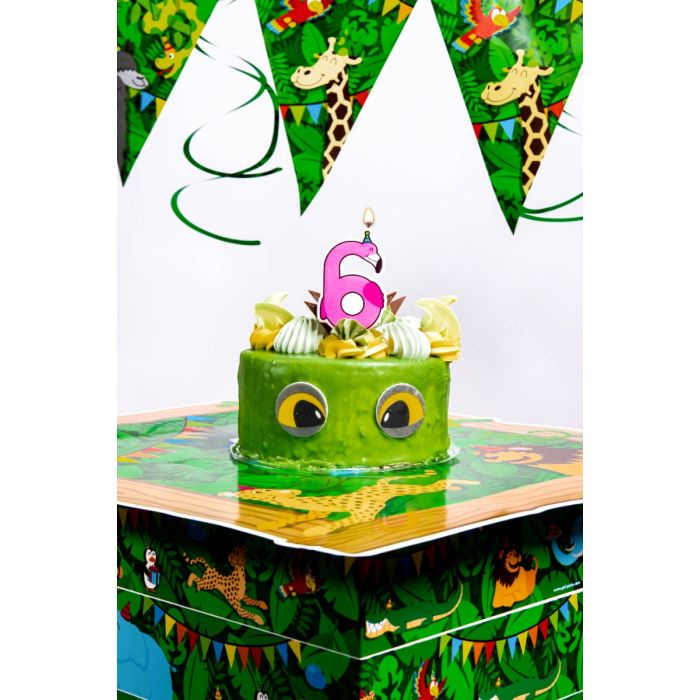 De Jungle kaarsjes zijn de perfecte taartdecoratie op een kinderfeestje, helemaal als dit feestje ook als thema de 'jungle' heeft! De kaarsjes zijn verkrijgbaar van 0 t/m 9 en hebben allemaal hun unieke eigen ontwerp, zoals deze jungle candle 6. Als u er de jungle ballonnen, vlaggenlijnen, swirls, letter banners en huldeschilden er direct bijbesteld is een kinderfeestje in een oogwenk feestelijk aangekleed.