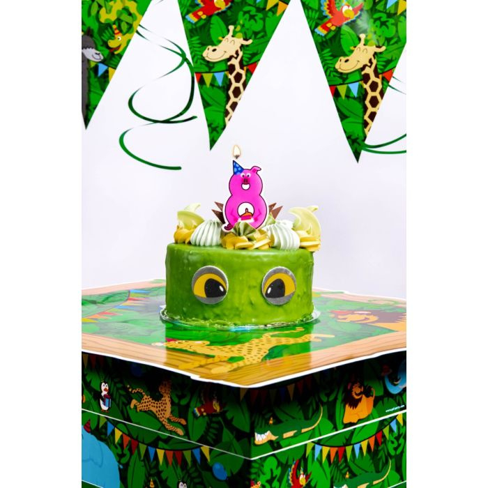 De Jungle kaarsjes zijn de perfecte taartdecoratie op een kinderfeestje, helemaal als dit feestje ook als thema de 'jungle' heeft! De kaarsjes zijn verkrijgbaar van 0 t/m 9 en hebben allemaal hun unieke eigen ontwerp, zoals deze jungle candle 8. Als u er de jungle ballonnen, vlaggenlijnen, swirls, letter banners en huldeschilden er direct bijbesteld is een kinderfeestje in een oogwenk feestelijk aangekleed.