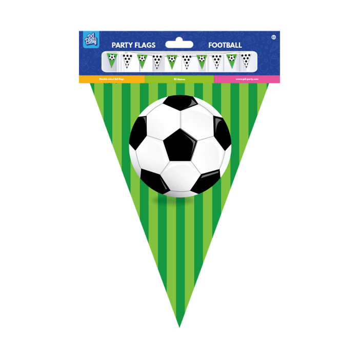 Een kinderfeestje kan niet zonder vlaggetjes en als je deze party flags foil Football koopt dan haal je direct een vlaggenlijn met een uniek thema in huis! De vlaggetjes zijn gemaakt van folie en de vlaggenlijn is 10 meter lang. Gecombineerd met onze leuke feestversiering en tafeldecoratie met hetzelfde thema heb je direct alles in huis om een feestje een succes te maken.